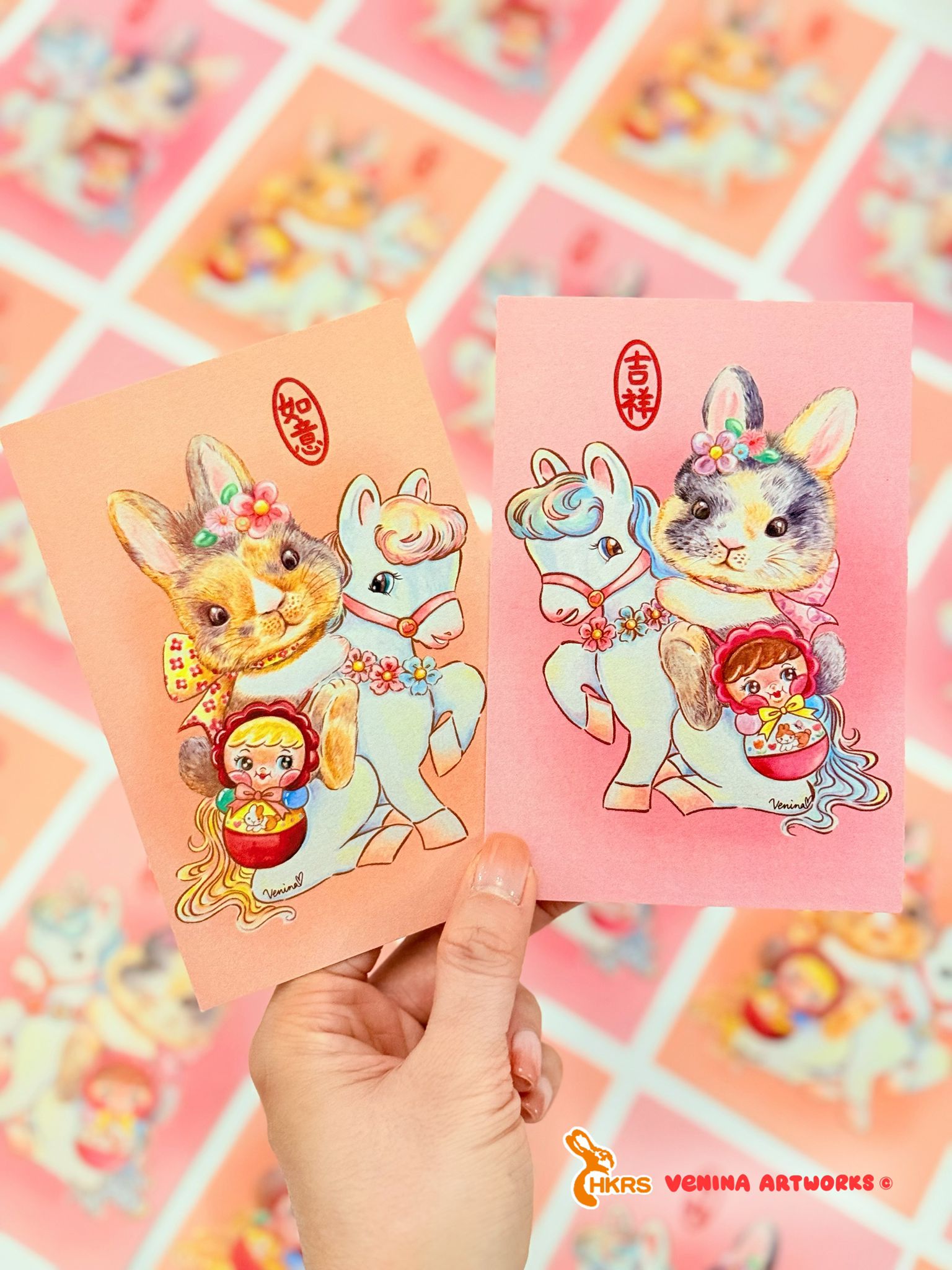 ➤ 兔仔騎馬仔,健康財富一齊嚟!利是封:闊8cm × 高11.5cm,每包$48