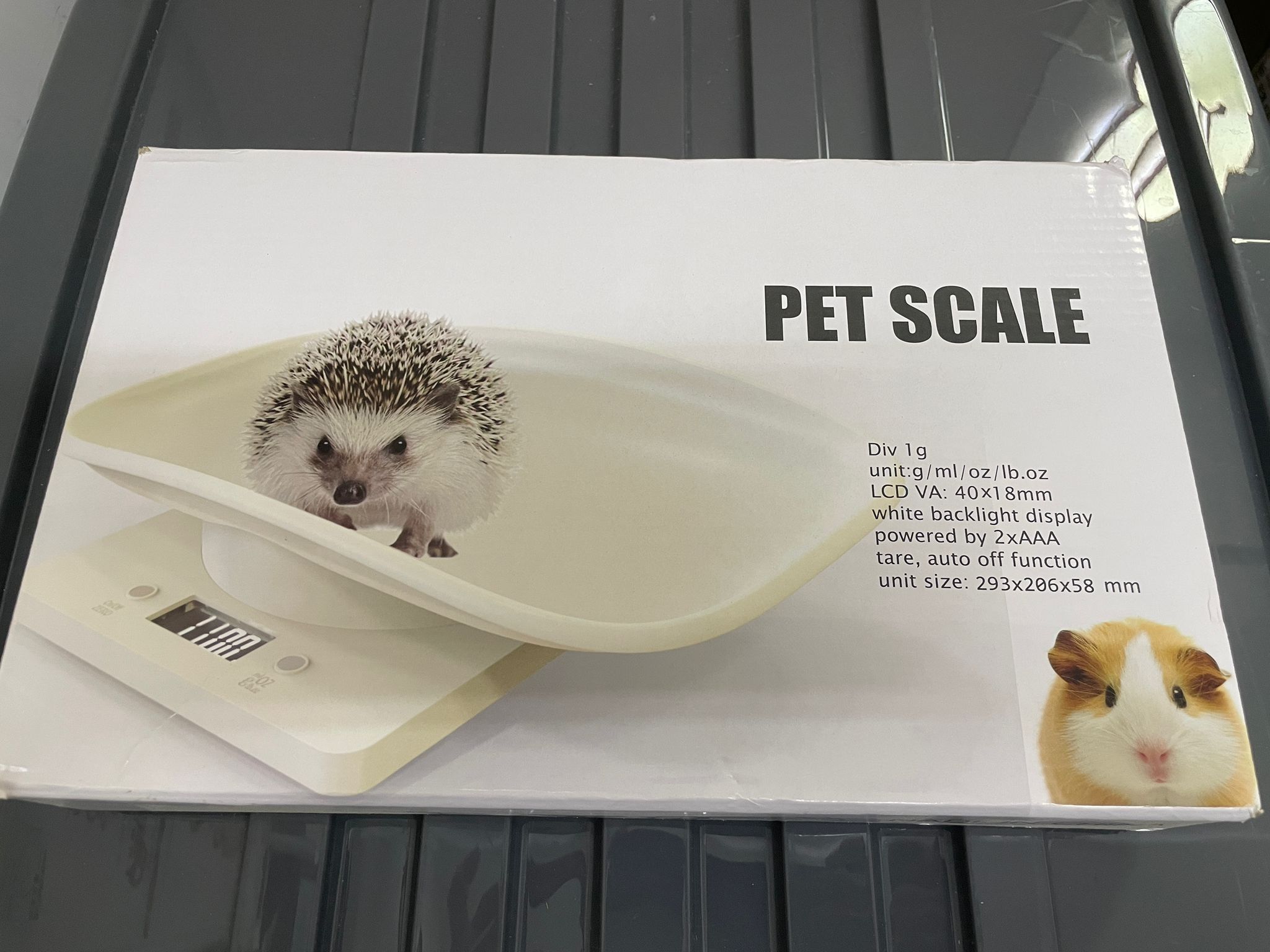 這是一款寵物電子秤,可用於測量小型寵物的體重,例如刺蝟、天竺鼠等。